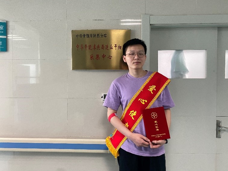 2018年,正在上大一的胡旭在学校听了有关造血干细胞捐献的宣讲后,毫不犹豫地留取了血样,成为中华骨髓库的造血干细胞捐献志愿者。20235月,胡旭收到了骨髓配型成功的电话,他的HLA分型与一名白血病患者配型成功。“我一开始以为是诈骗电话。”胡旭笑着说道,“但经过陕西分库工作人员耐心地讲解,以及我自己查阅相关资料,我更相信这是一个奇迹。”没有过多的犹豫,他同意捐献自己的造血干细胞去挽救这名患者的生命。
